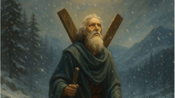 Era Andrei, ucenicul lui Iisus, omul cu ochi blânzi și pas domol, cel care nu se slăvea pe sine, ci pe Cel care l-a chemat primul pe nume. În mâini nu aducea arme. Nu avea aur. Nu avea puteri lumești.