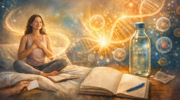 De cum te trezești, șoptește această afirmație timp de 2–3 minute. Ochii sunt închiși, apare un zâmbet ușor pe buze (foarte important), respirația devine mai profundă, abdomenul se ridică la fiecare inspirație. Imaginează-ți cum aceste cuvinte ajung în organe, curg prin sânge și pătrund în fiecare celulă.