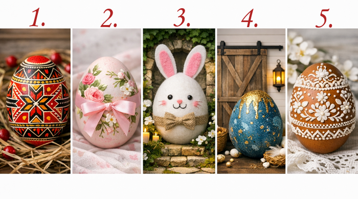 Privește aceste 5 ouă decorate de Paște. Nu te gândi prea mult. Alege-l pe cel care te atrage instinctiv… și descoperă ce ascunde sufletul tău.